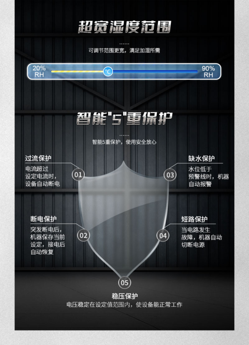 ·操作簡(jiǎn)單,缺水自動(dòng)報(bào)警·特有濕度與故障顯示功能